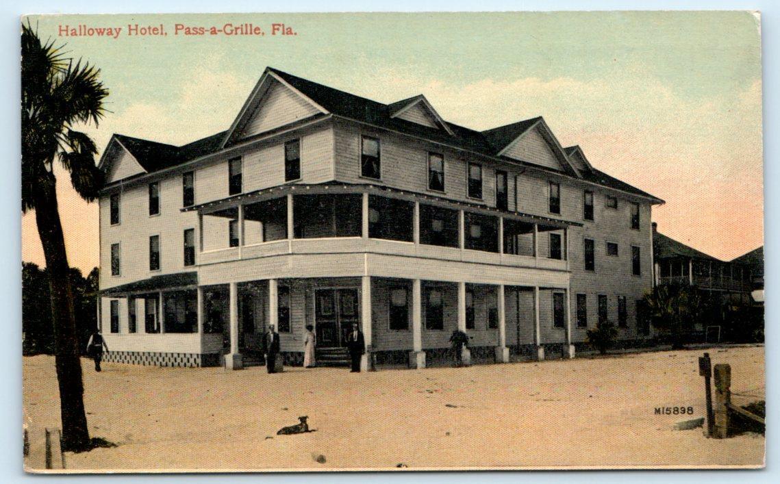 PASS-a-GRILLE, Florida FL ~ HALLOWAY HOTEL c1910s Pinellas County Postcard