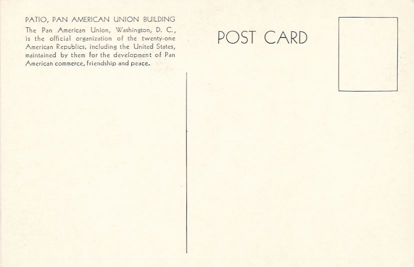 Patio at Pan American Union Building. Washington, DC. Standard sized chrome card. Excellent condition.
