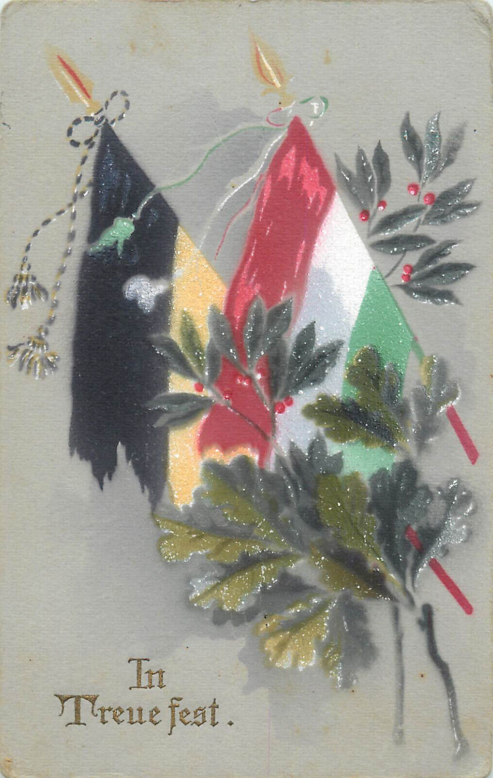 Patriotic novelty postcard 1915 flags alliance loyalty