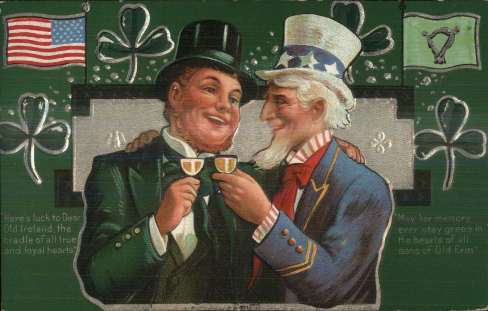 Patriotic St. Patrick's Day Uncle Sam Toasting c1910 Psotcard