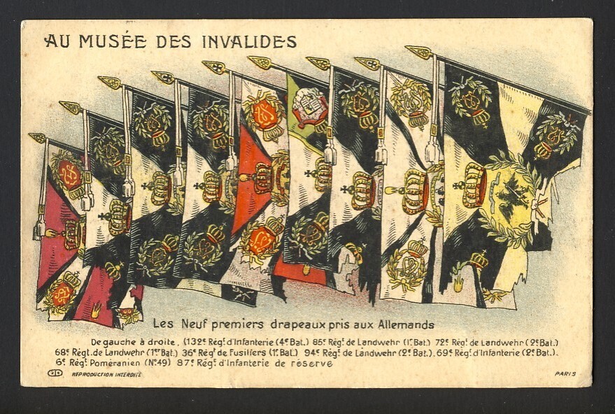 PATRIOTIC WWI German battle flags - Size: @ 5.5 x 3.5 inches - please see picture for details that I may have missed. Shipping from my location rural Canada: Canada Post office is open Monday to Friday - closed on ... Read More