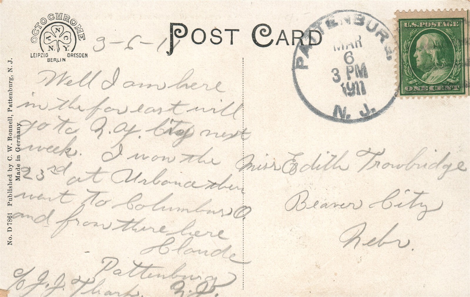 PATTENBURG NJ BOWLBY'S CAFE ANTIQUE POSTCARD