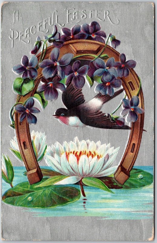 Peaceful Easter Water Lily Magnet Violets Flowers Postcard
