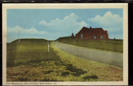 A peco unused linen era colour postcard showing fort beausejour near amherst, nova scotia.