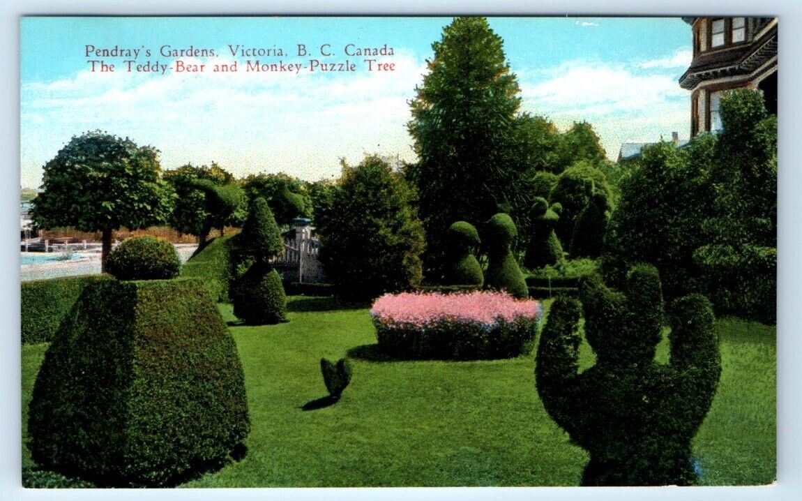 Pendray's Garden - Teddy Bear & Monkey Puzzle Tree - Victoria CANADA Postcard