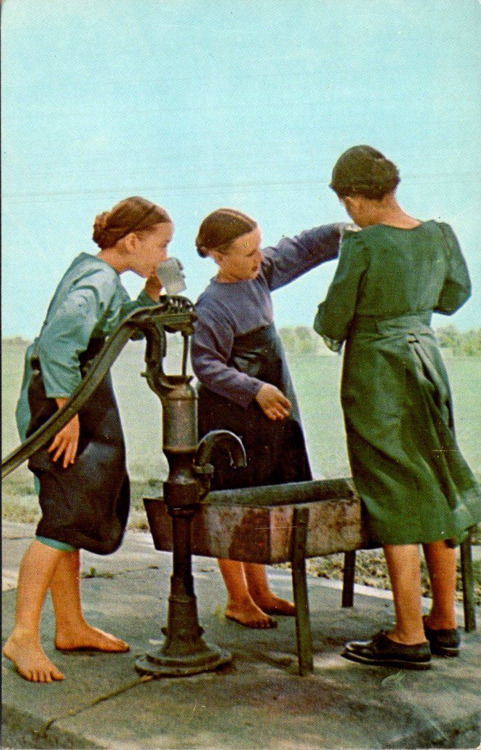 Pennsylvania Amish Country Amish Girls Enjoying Drink Of Water