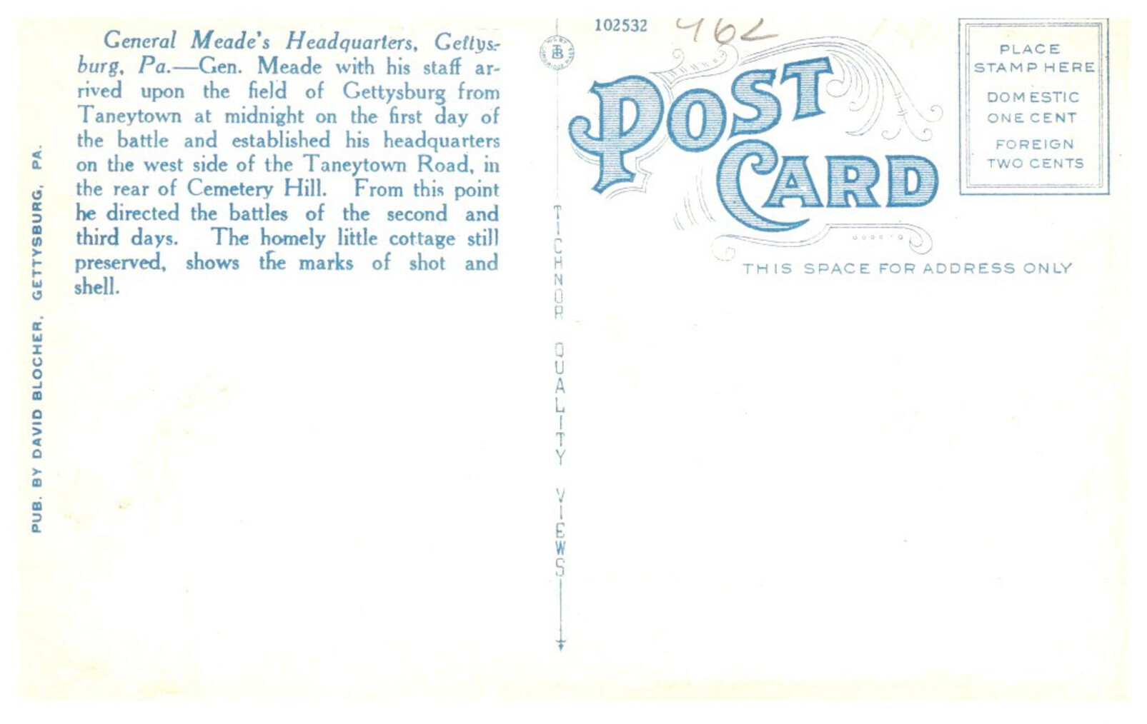 Pennsylvania Gettysburgh Gen. Meade's Headquarters