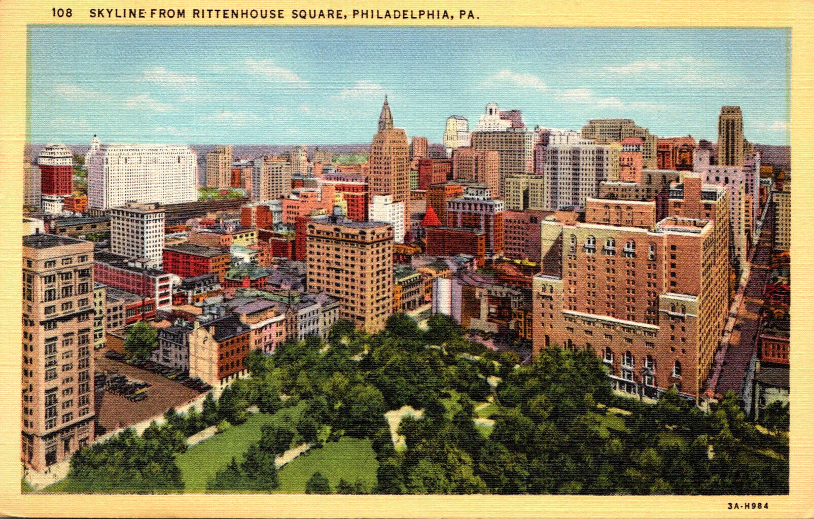Pennsylvania Philadelphia Skyline From Rittenhouse Square 1948 Curteich
