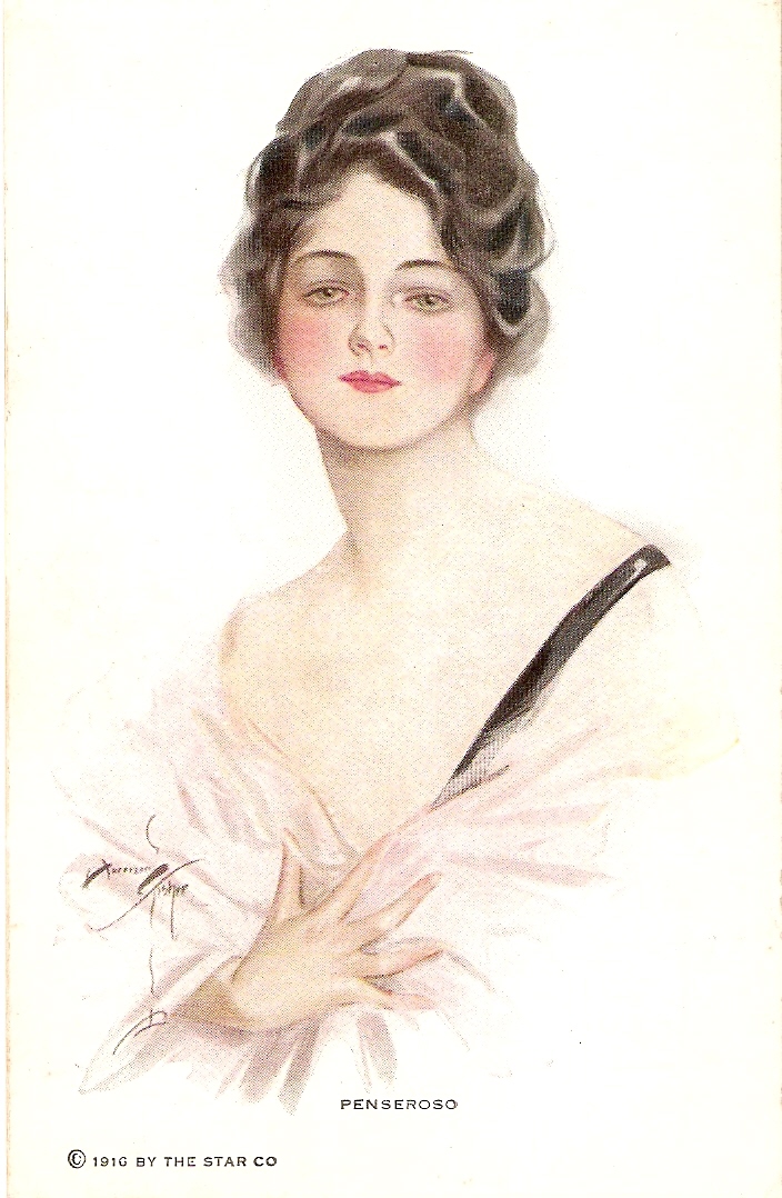 \"Penseroso\" Berautiful American Lady Postcard, signed.