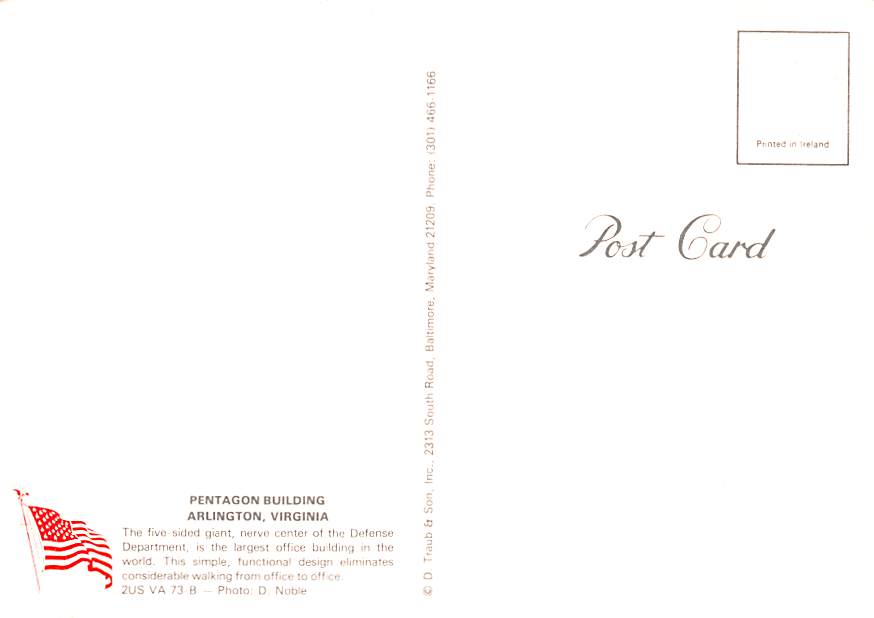 Pentagon - Arlington, Virginia Grade: 1 Category: Continental Size Postcard, Approx 4 in x 6 in (10 cm x 15.25 cm) Product Size: Continental size: 4X6 inches (10.5 cm x 15 cm) Grading Scale: Grade 1 = Perfect ... Read More