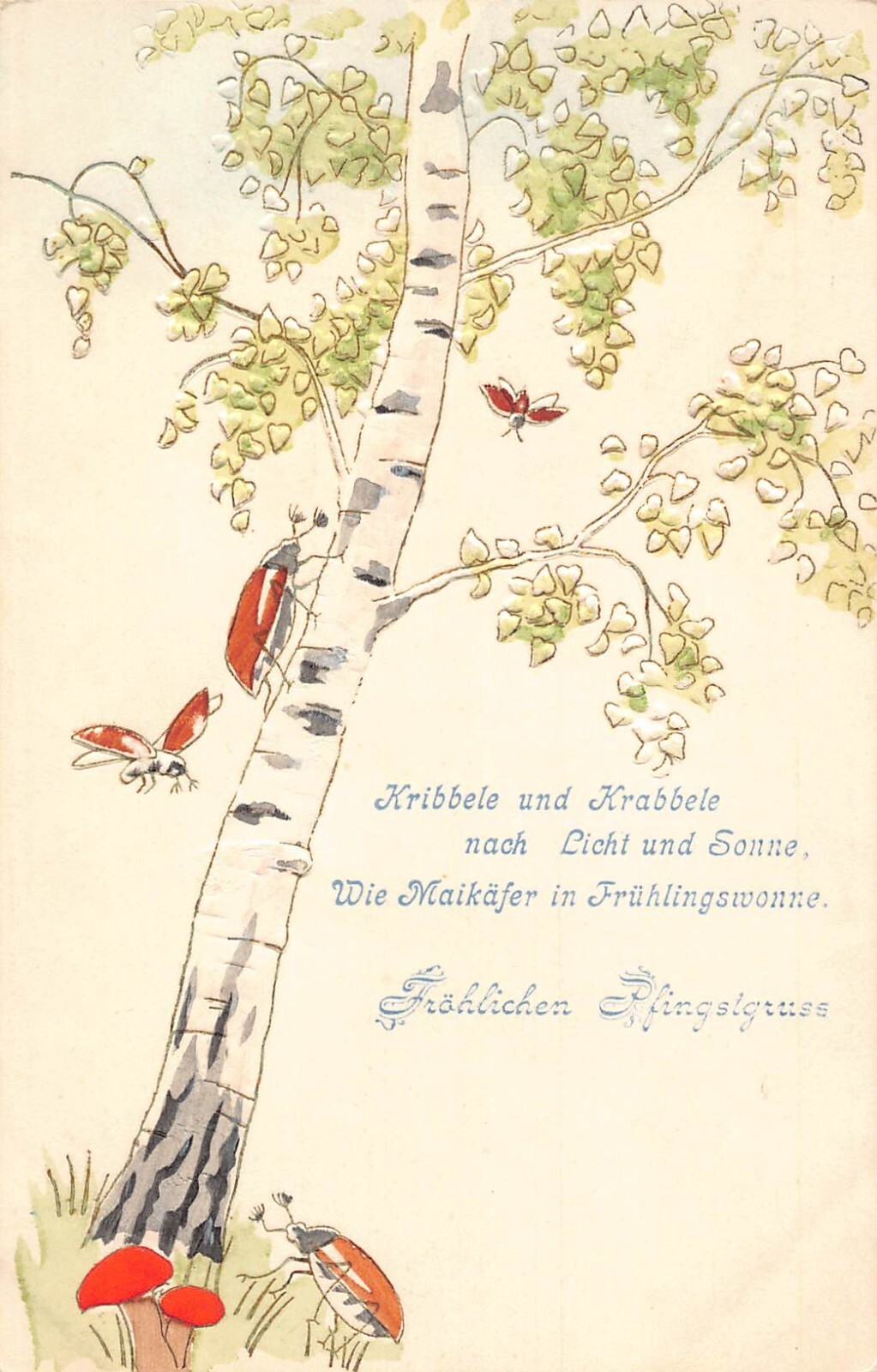Pentecost Greetings Maybug Insects Mushroom Birch tree embossed postcard C318 This item is listed via xdm.it software