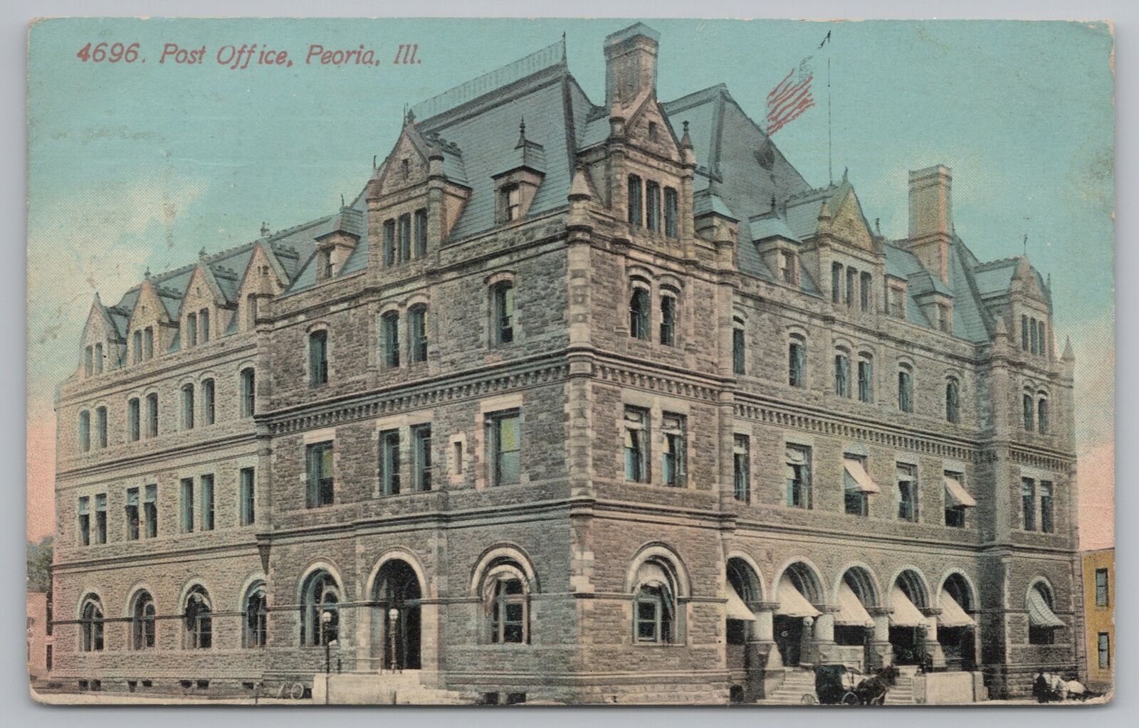 Peoria Illinois~Stone Construction US Post Office~Horse & Tiny Buggy~c1910