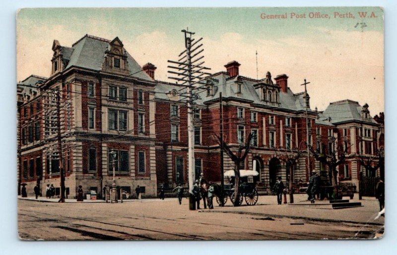 PERTH, Western Australia ~ c1910s Street Scene POST OFFICE Postcard