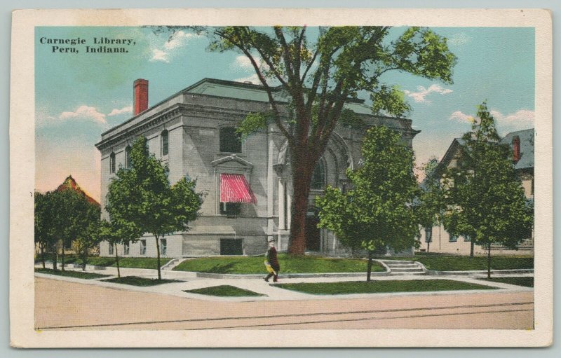 Peru Indiana~Carnegie Library~1920s Postcard