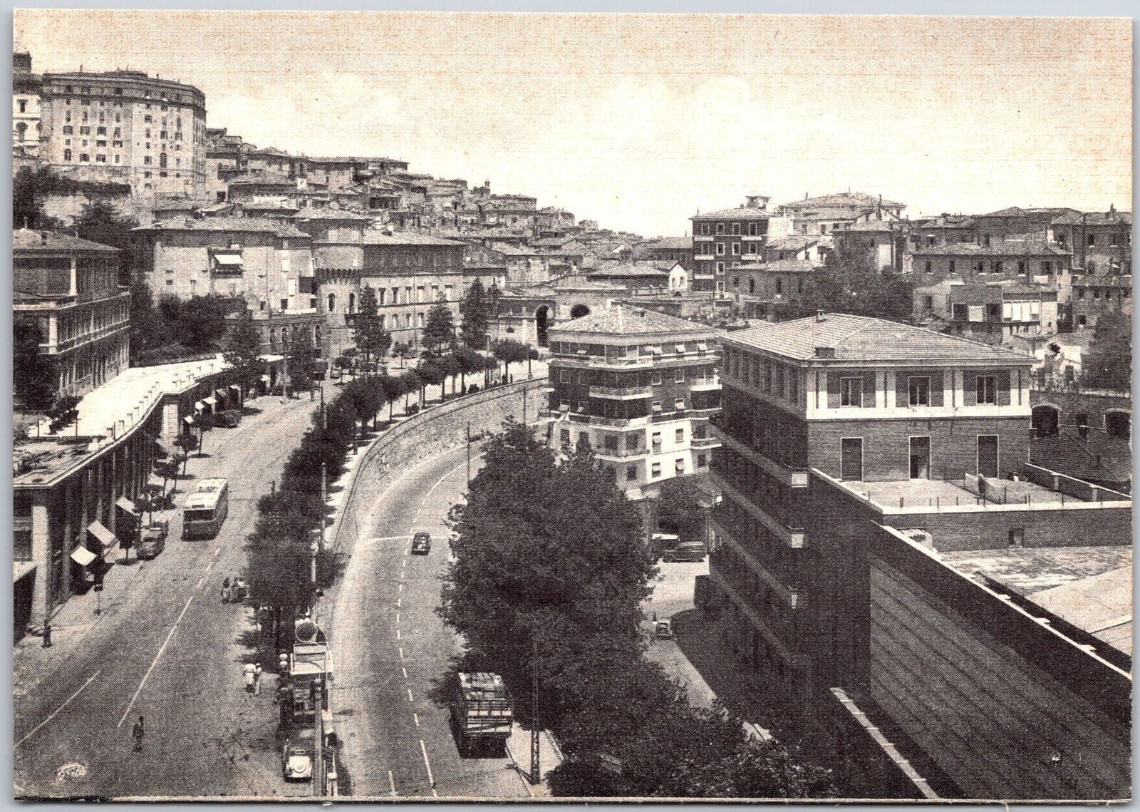 Capture the breathtaking beauty of Perugia with this vintage postcard featuring a panoramic view of the city. Transport yourself to the heart of Italy as you gaze upon the stunning skyline, intricate buildings, and winding highways that make Perugia truly unique. Immerse yourself in the charm of this historic city as you explore its rich architectural heritage. The postcard showcases the picturesque streets lined with centuries-old buildings, each one telling a story of the city's past. From the grand palaces to the quaint houses, every detail is captured in exquisite detail, allowing you to experience the essence of Perugia from afar. The vibrant colors and intricate design of this postcard add a touch of nostalgia to any collection. Whether you're a seasoned traveler or an armchair explorer, this postcard is a must-have for anyone who appreciates the beauty and history of Italy. Perfect for sending a heartfelt message to a loved one or framing as a piece of art, this vintage postcard is a timeless keepsake that will transport you to the enchanting streets of Perugia. Relive your own memories or inspire someone else to embark on their own Italian adventure with this captivating piece. Capture the essence of Perugia with this vintage postcard and let its beauty transport you to the heart of Italy.