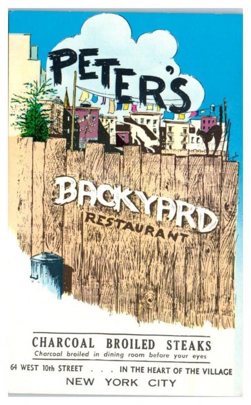 I have for sale one Peter's Backyard Restaurant, New York City Postcard.