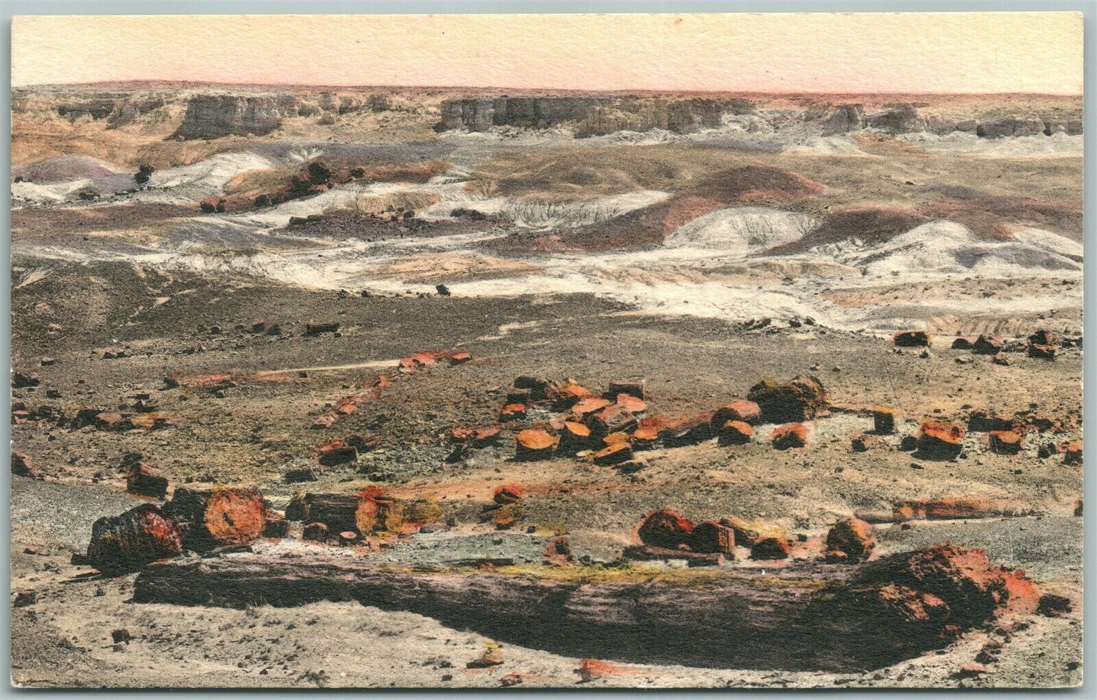 PETRIFIED FOREST ADAMANA AZ HAND COLORED ANTIQUE POSTCARD