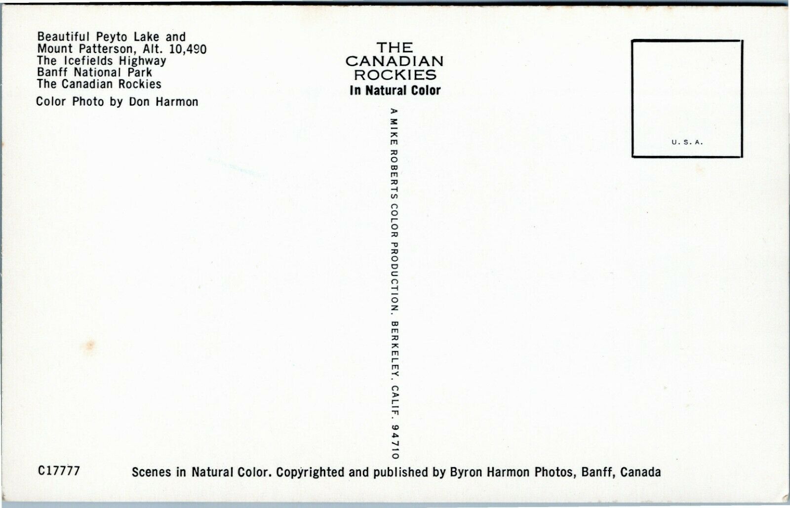 Peyto Lake and Mount Patterson, Alberta Canada postcard