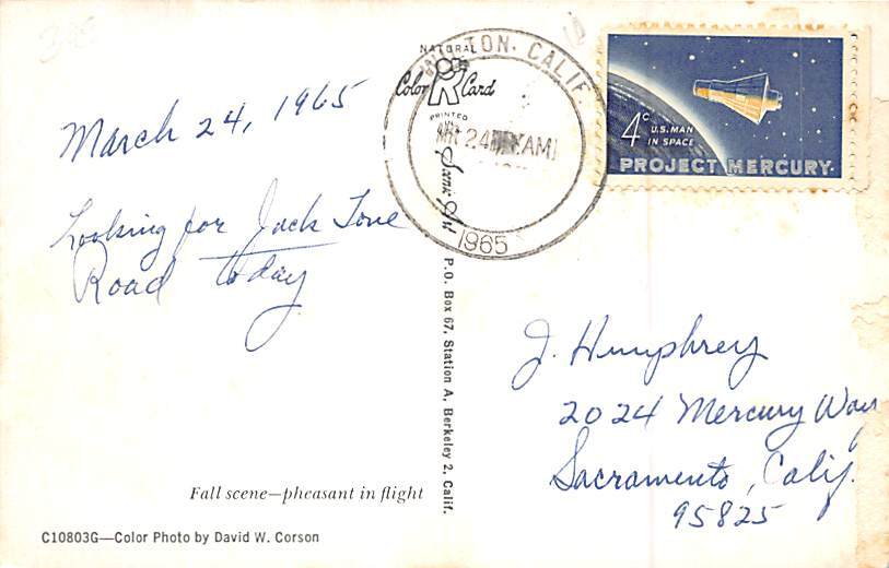 Pheasant Bird Postcard 1965, Grade: 2, , Size: Regular Size Postcard - approximately 3 1/2 inch x 5 1/2 inch (9 CM x 14 CM) Grading Scale: Grade 1 = Perfect corners Grade 2 = Very Minimal corner wear, no crease ... Read More