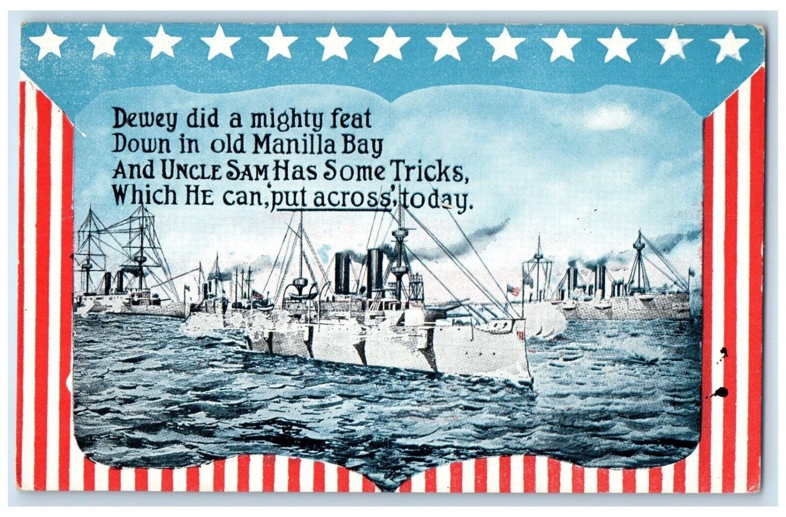 Philippines Postcard Old Manila Bay And Uncle Sam Steamer Ship c1910's Antique