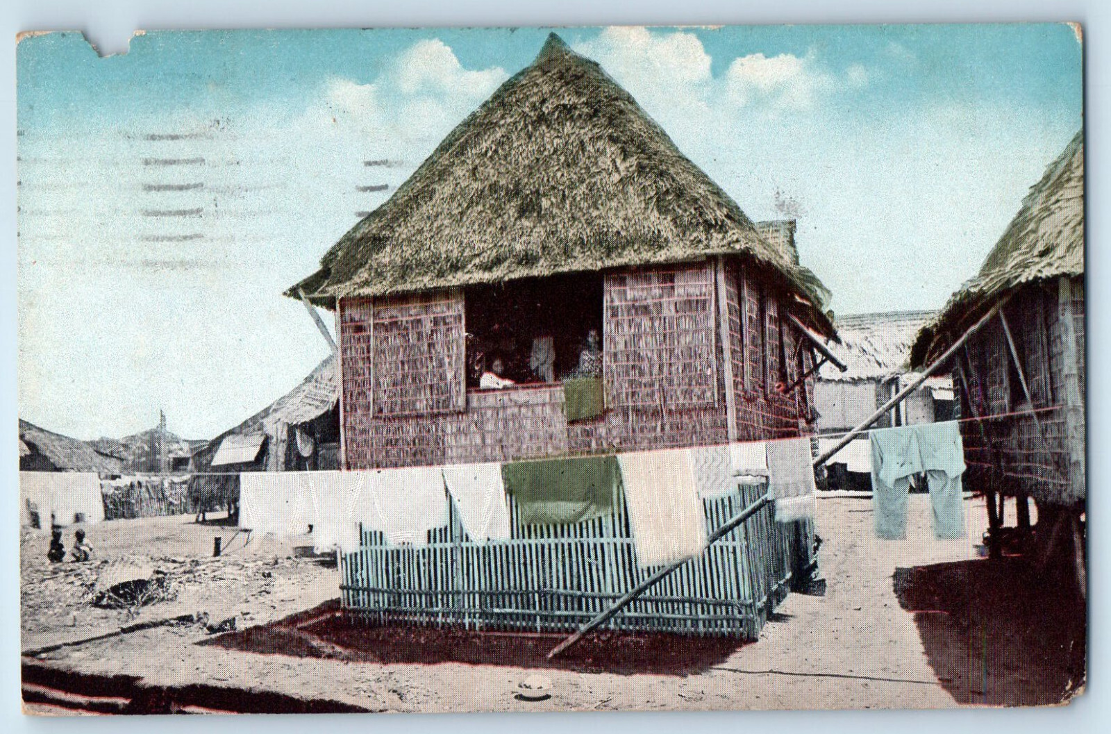 Philippines Postcard View of Native Nipa Home and Hanged Clothes 1922 Posted