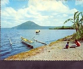 PHILIPPINES TAAL LAKE VOLCANO RIDGE POSTCARD CHILDREN BOA...