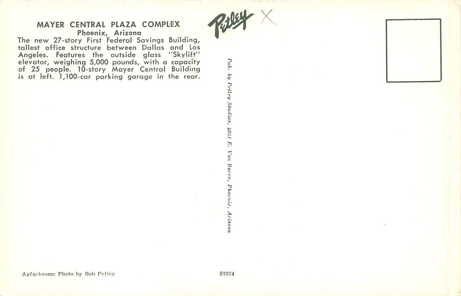 Phoenix Arizona 1960s Postcard Mayer Central Complex Savings Building