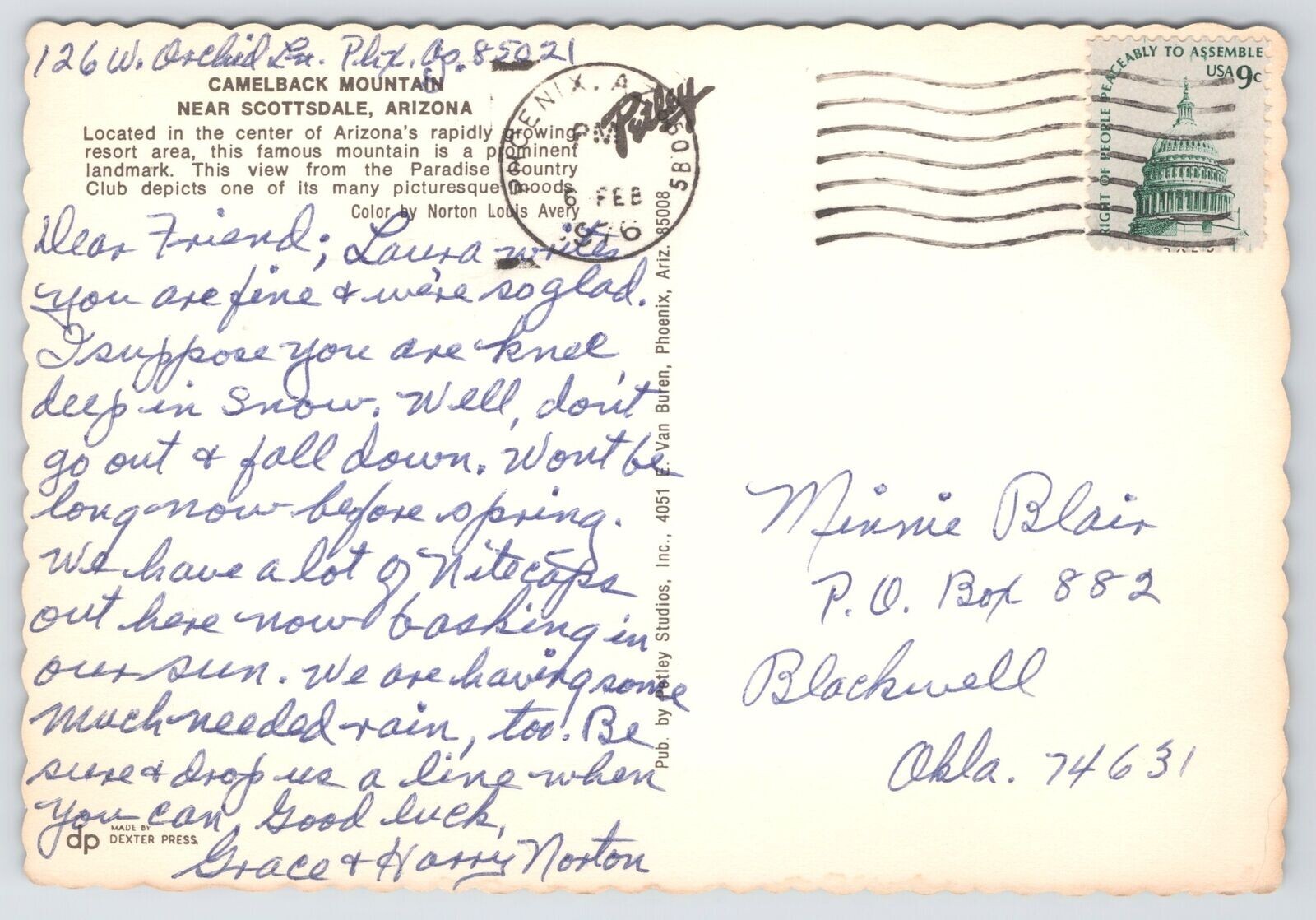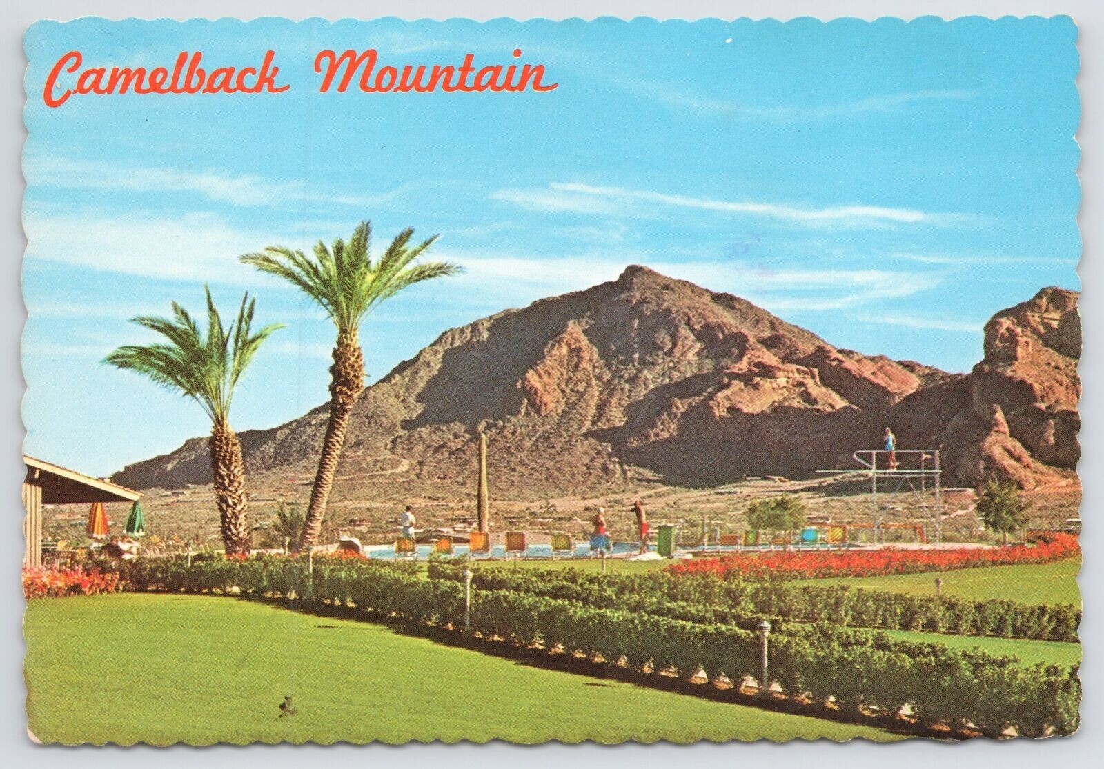 Phoenix Arizona~Camelback Mountain~Pool in Foreground~Continental Postcard