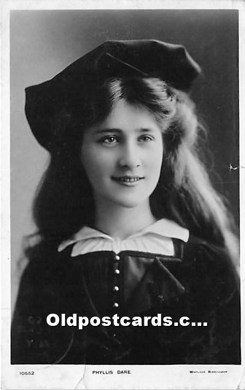 Phyllis Dare Theater Actor / Actress Postcard 1905, Grade: 3, , Size: Regular size: Approx 3 1/2 X 5 1/2 inch (9 cm X 14 cm) Grading Scale: Grade 1 = Perfect corners Grade 2 = Very Minimal corner wear, no crea ... Read More