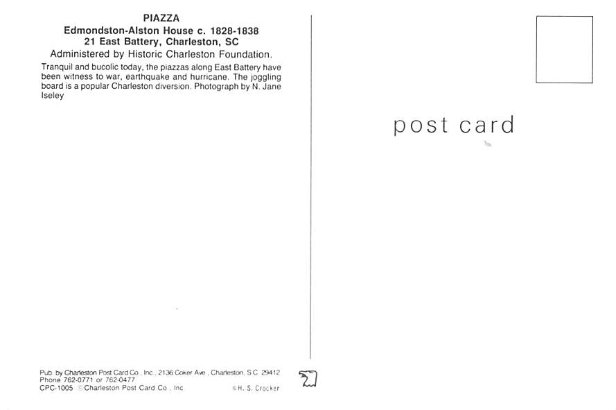 Piazza - Charleston, South Carolina Grade: 1 Category: Continental Size Postcard, Approx 4 in x 6 in (10 cm x 15.25 cm) Product Size: Continental size: 4X6 inches (10.5 cm x 15 cm) Grading Scale: Grade 1 = Per ... Read More