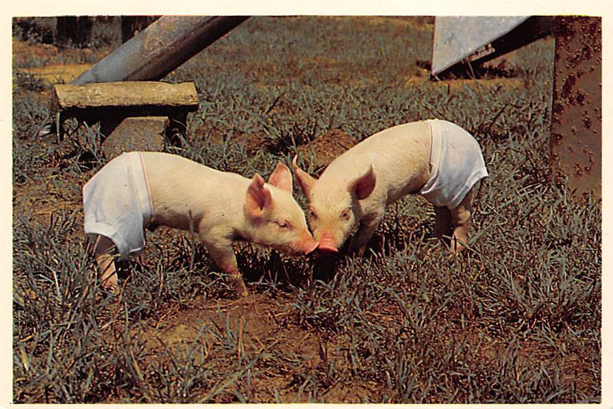 Pigs In Their Underwear Postcard Postcard, Grade: 1 Size: Continental Size Postcard - approximately 4 inch X 6 inch (15 CM X 10.5 CM) Grading Scale: Grade 1 = Perfect corners Grade 2 = Very Minimal corner wear, ... Read More