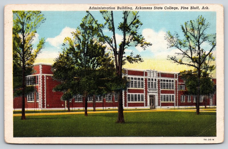 Pine Bluff AR~Administration Bldg~Arkansas State College~Vintage Linen Postcard