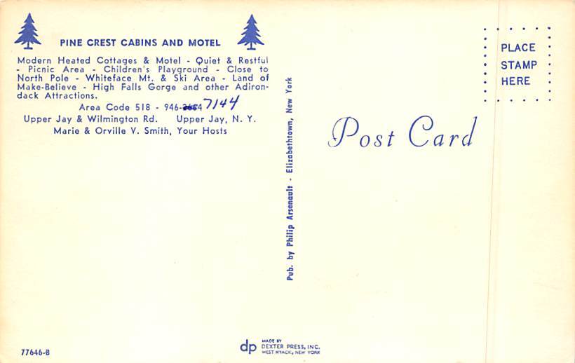 Pine Crest Cabins Jay, New York NY Postcards - Unused