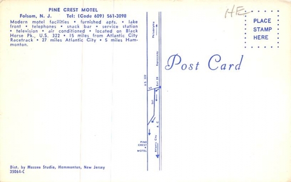 Pine Crest Montel in Folsom, New Jersey Postcard - Unused
