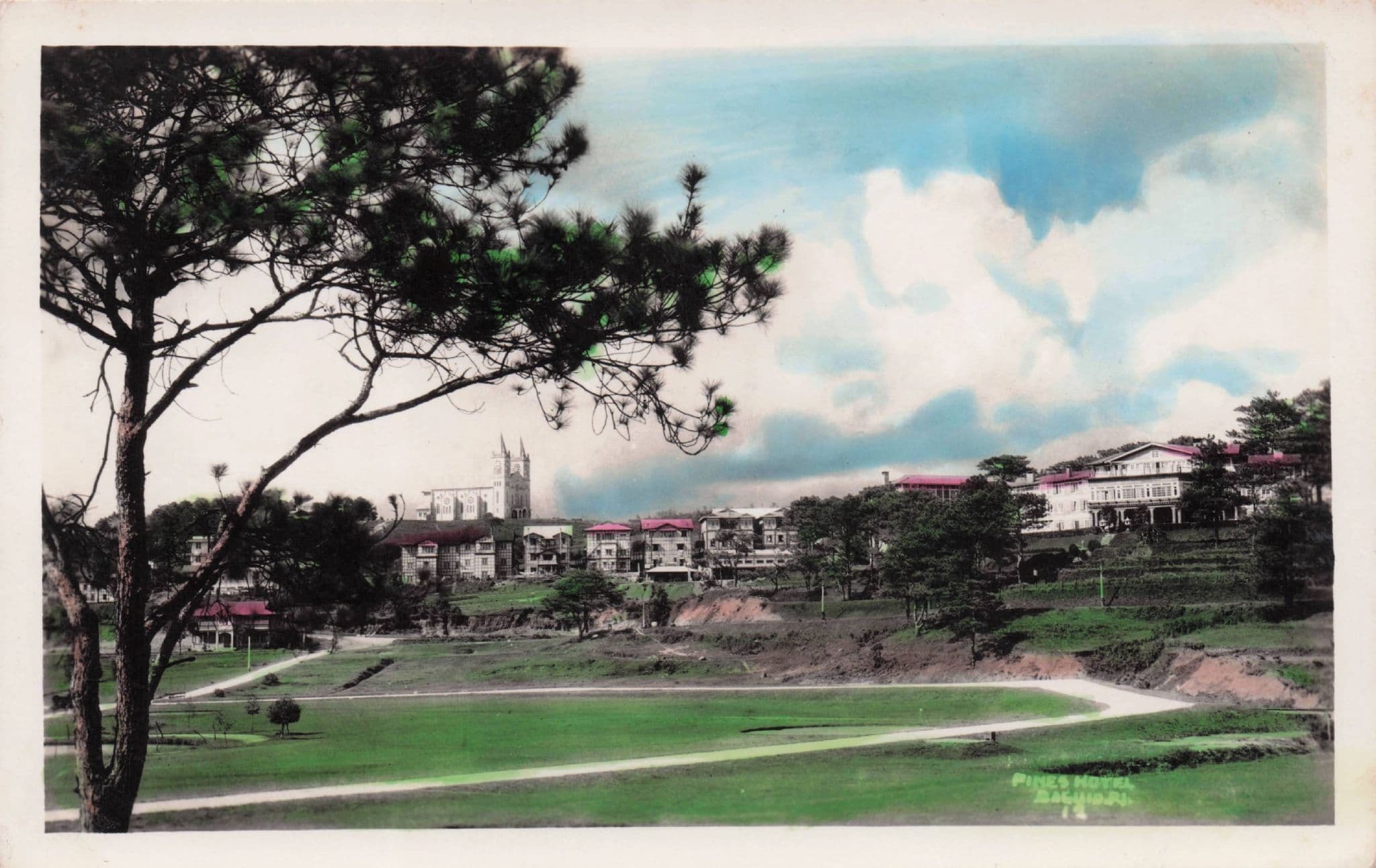 NP153 Antique real photo postcard and stunning early colour souvenir of the Pines Hotel in the Philippines unused bar very slight places this is truly excellent condition (ex minus grading).