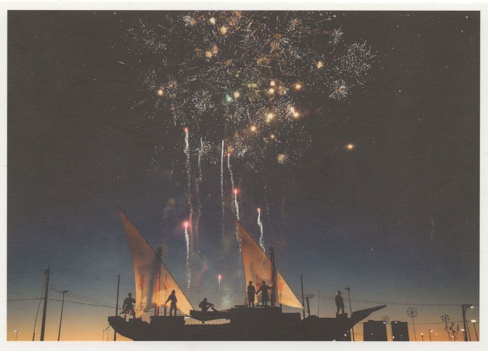 MFDPIBKFBMT-L- I always try to seek out some of the most unique postcards for my collectors, often having to reach out overseas to source them. This stunning postcard originated from Germany being of modern origin and shows a firework display on a modern ship that almost looks like modern pirate silhouettes - I have never come across a postcard like this before and it is clearly an award winning photo - On the reverse is something in German I cannot translate but I understand it is linked to motivation & success to perfectly accompany this unique souvenir - it is unused and mint.