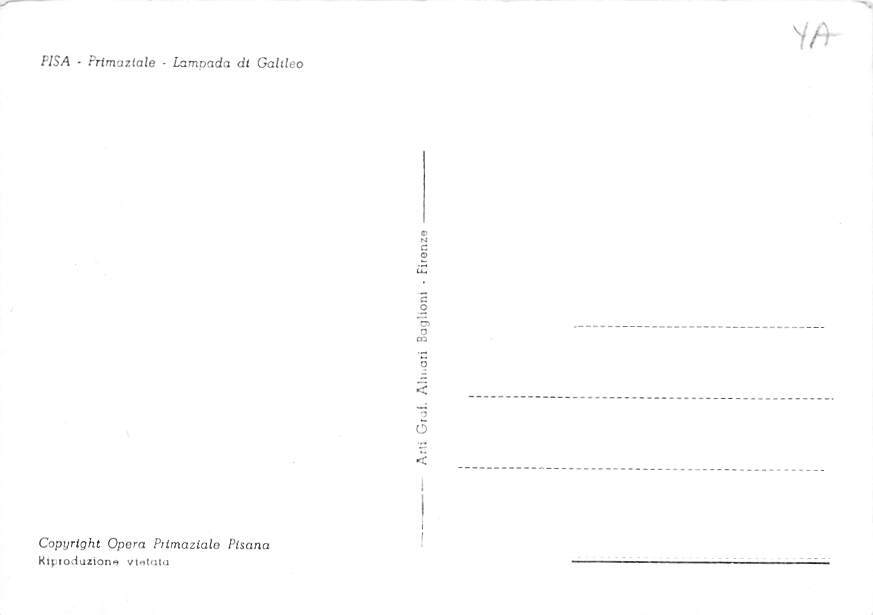 Pisa Primaztale , Lampada Dt Galtleo Postcard - View Images Grade: 1 Size: C - Continental Size Postcard - approximately 4 inch X 6 inch (15 CM X 10.5 CM) Grading Scale: Grade 1 = Perfect corners Grade 2 = Very ... Read More