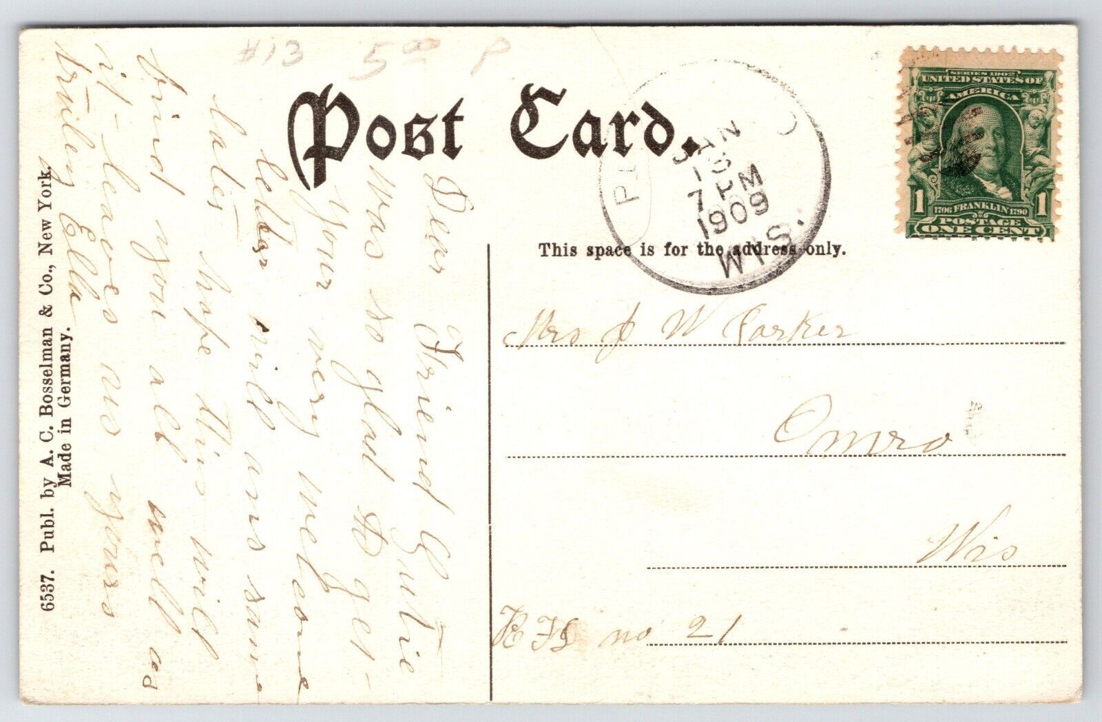 Condition: The Vintage Postcard listed as "used" because of age. It may or may not be postally used. We ... Read more about the seller notes The Vintage Postcard listed as "used" because of age. It may or may not be postally used. We provide scans that show all edges and corners. See photos, front and back, for condition. Read Less about the seller notes
