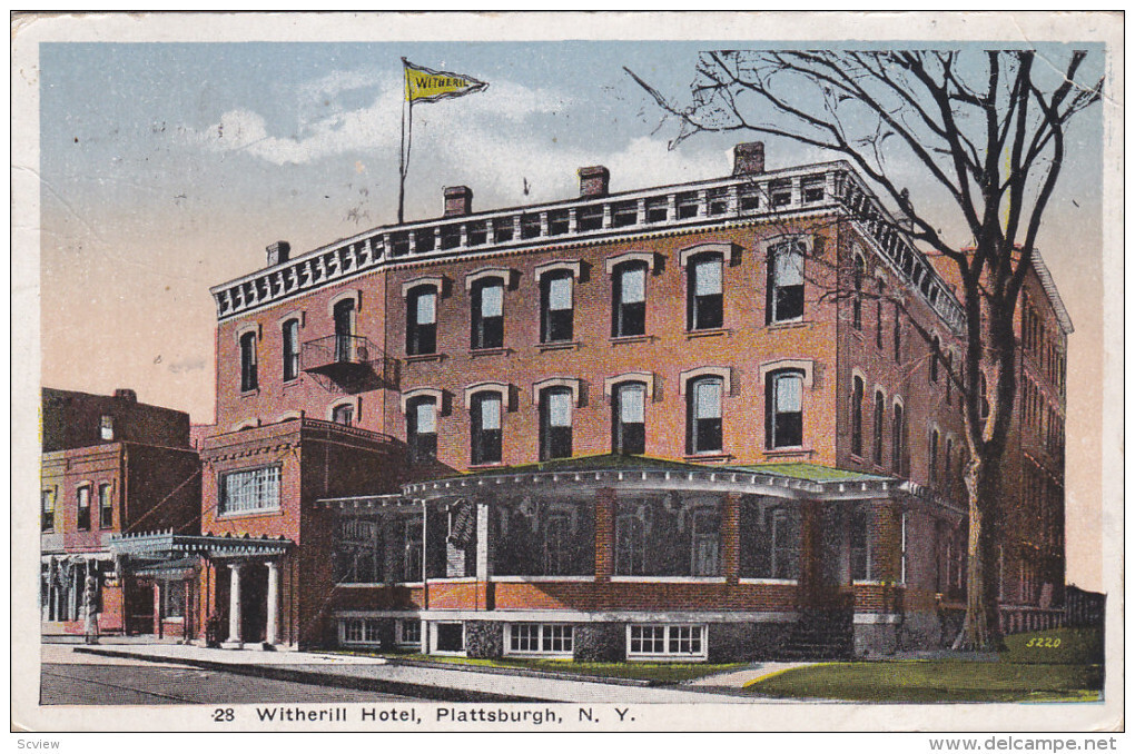 PLATTSBURGH, New York, PU-1918; Witherill Hotel :: Postcard, 3.5" x 5.5", Litho, VG+, WOB