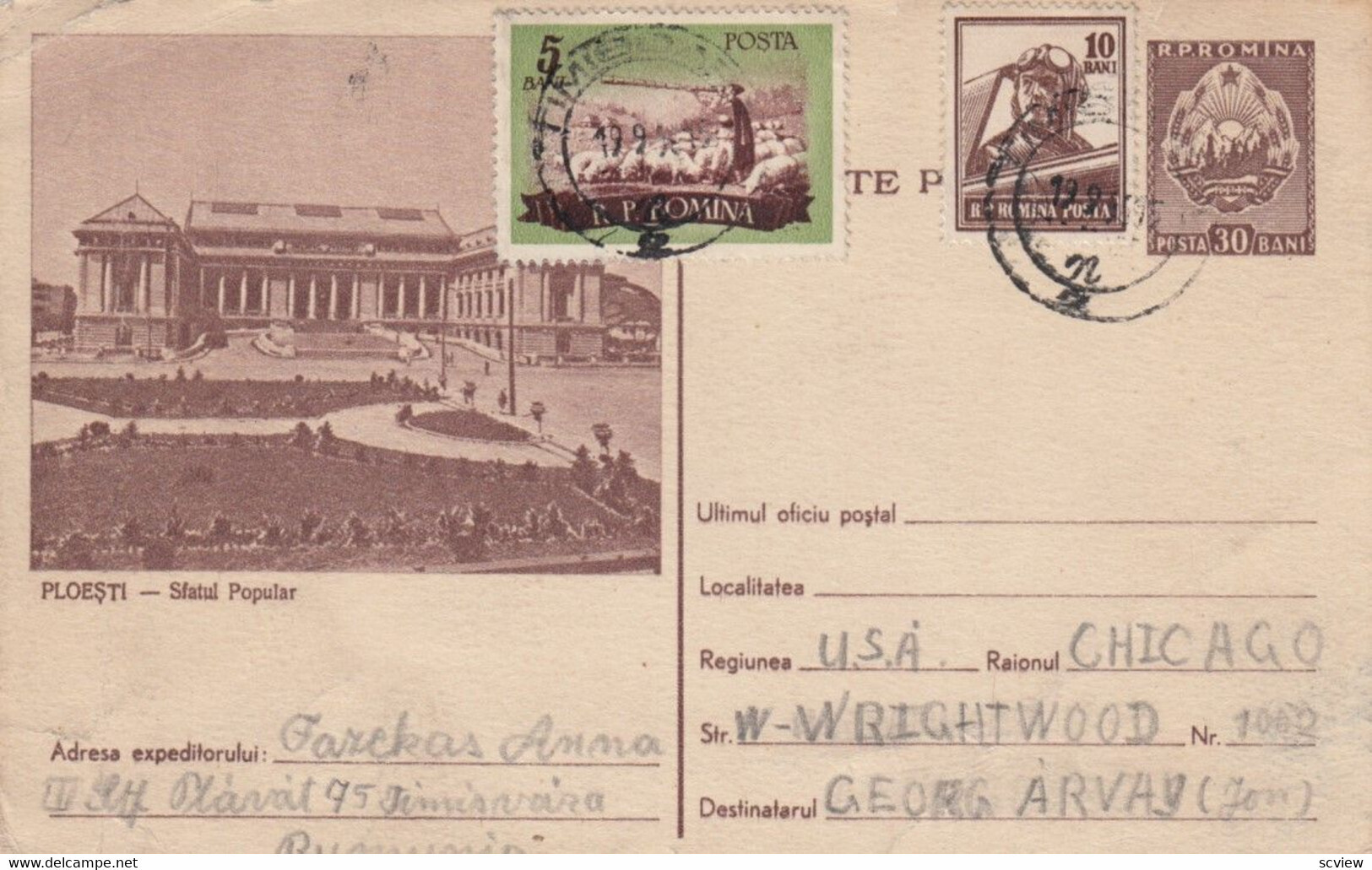 PLOESTI, Romania, 1950-60's, Sfatul Popular :: Postcard, 3.5" by 5.5", Litho