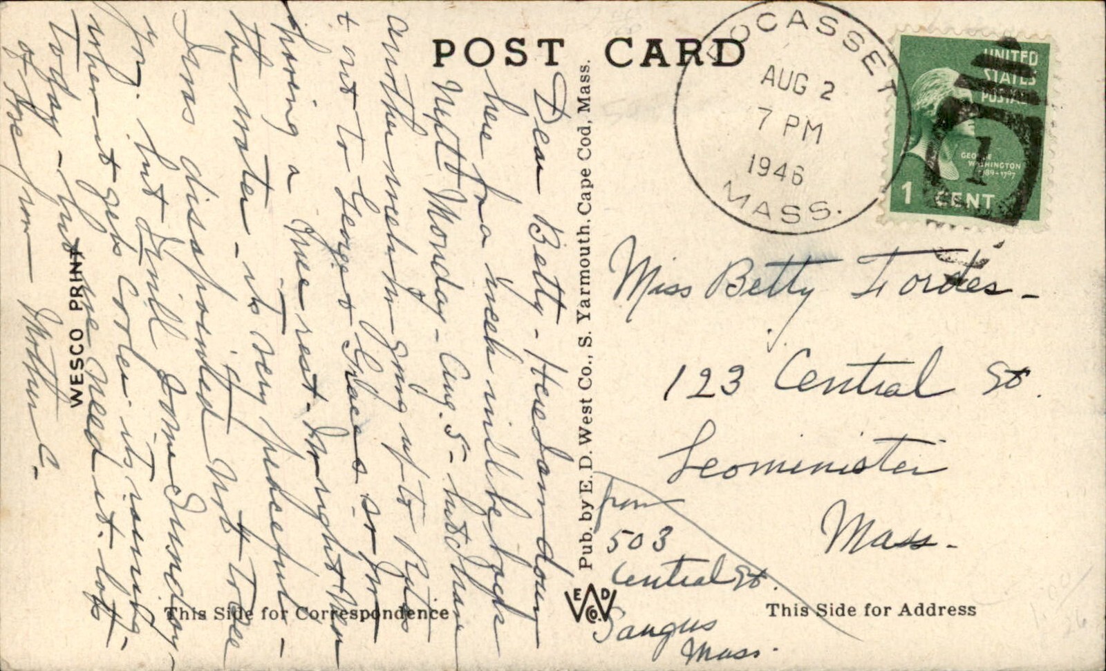 Pocasset Cape Cod Massachusetts Barlows River c1930-50s Vintage Postcard