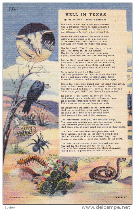 Poem "HELL in Texas" , 30-40s :: Postcard , 3.5 by 5.5 , Linen , EX