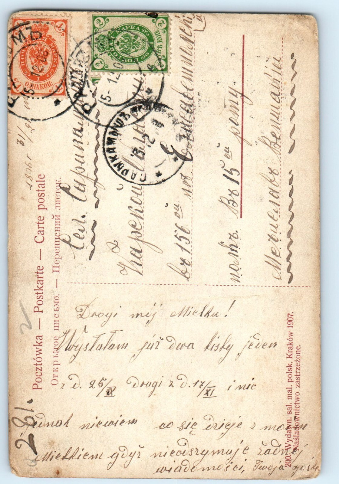 Poland Postcard Man Eagle Edelweiss Flower Happy New Year c1910 Satkowicz