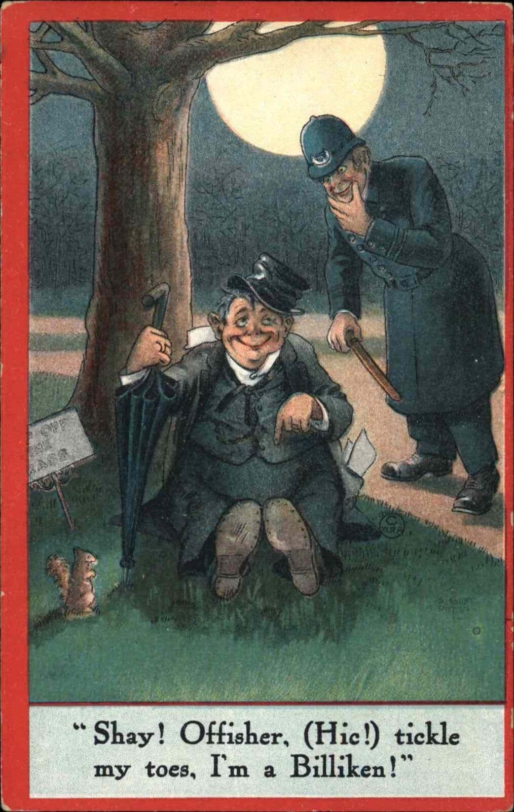 Policeman Cop Drunk Man in Park Comic c1910 Vintage Postcard