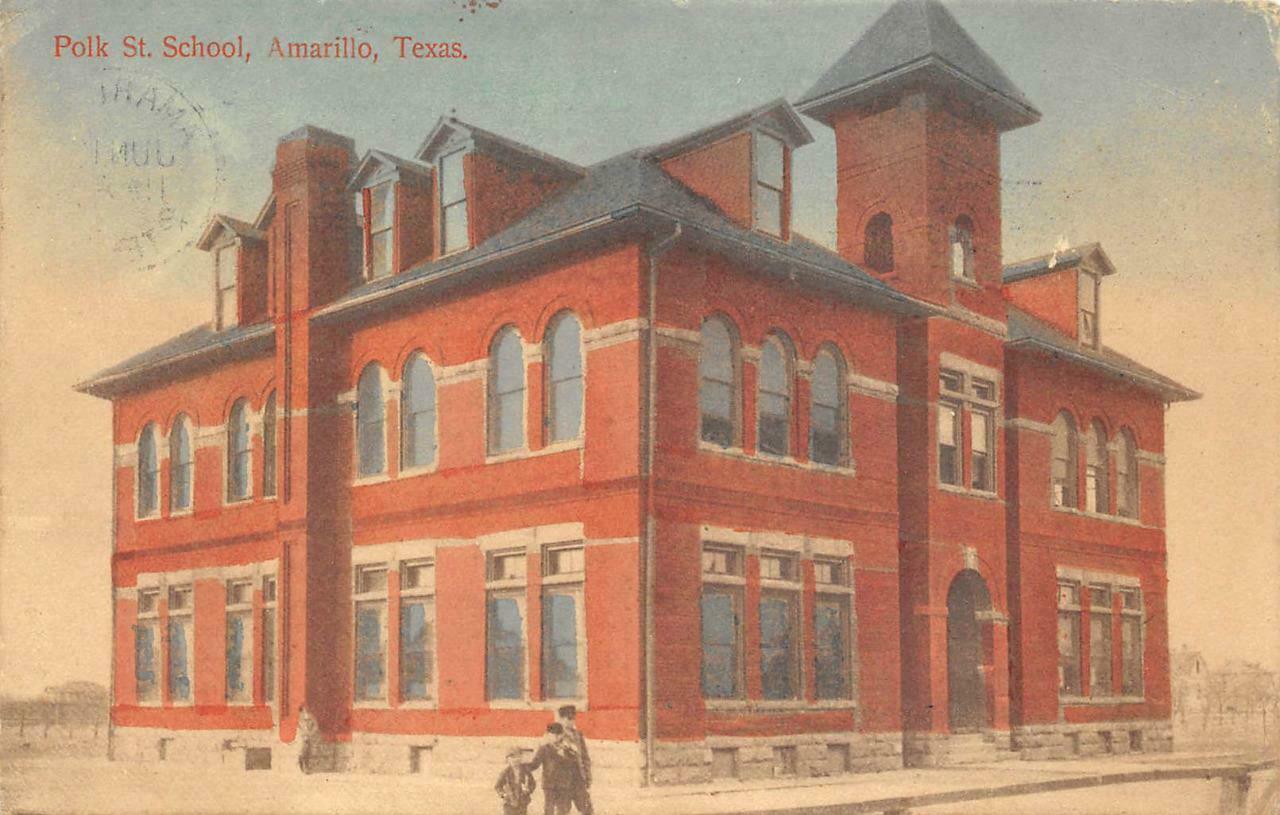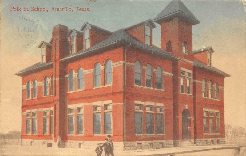 POLK ST. SCHOOL AMARILLO TEXAS POSTCARD 1909