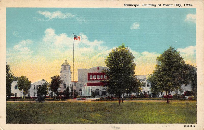 Ponca Oklahoma 1930-40s Postcard Municipal Building
