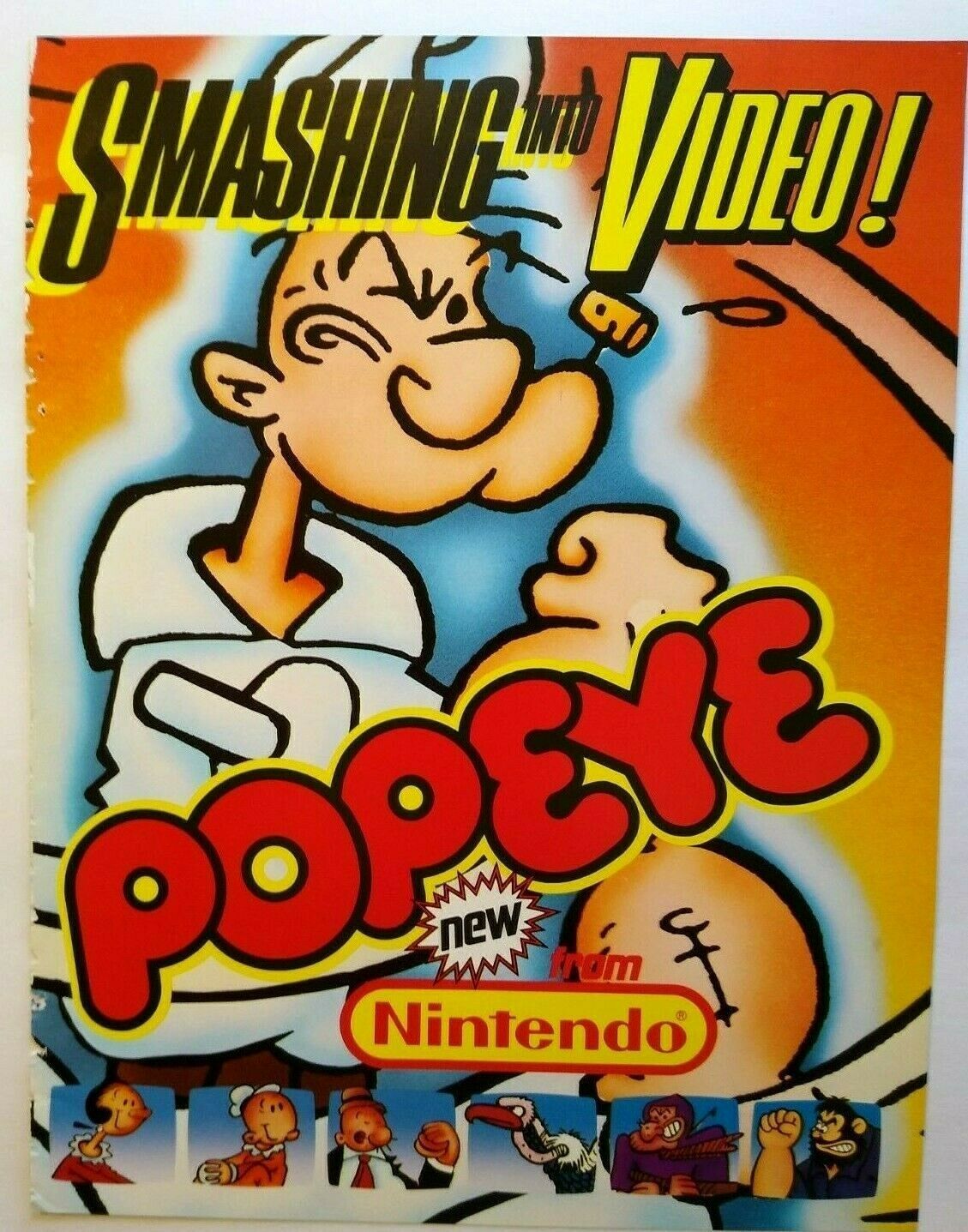 Condition: Original paper promo sales flyer. Single page double sided artwork sheet. Was removed from trade magazine and has edge wear to left side, creases, wrinkles, and staple holes. See photos. Nintendo Popeye ... Read More