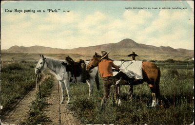 Poplar MT Cancel Cowboys Horses c1910 Postcard