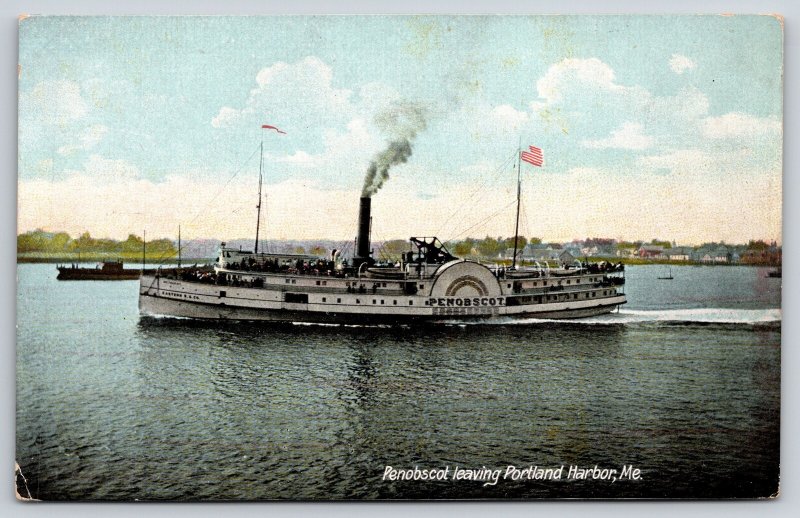 Portland Harbor Maine~Ship Penobscot Leaving Harbor~c1905 Postcard