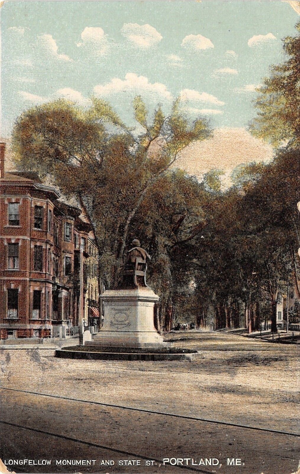 Portland Maine~Backside Longfellow Monument~State Street~1910 Postcard